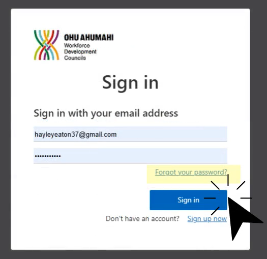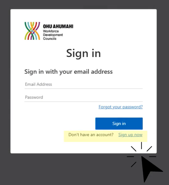 Select the Sign up now button and complete the registration using your unique work email address and a password of your choosing, please do not register with a shared email account as we need to verify you.